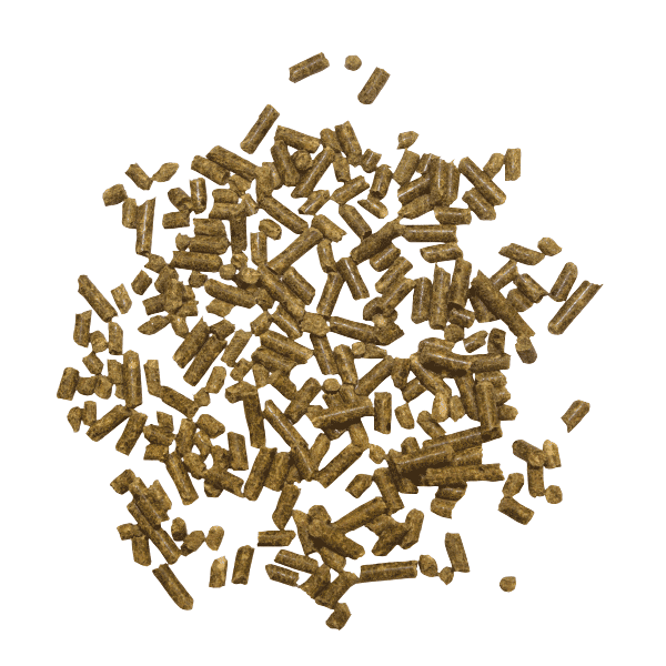 Lignocellulose (obtenu à partir d' épicéa) (48%), herbe, séchée à haute température (12,7%), pulpe de chicorée séchée (6%), huile de colza, raff. (4,5%), pulpes de betteraves, sechée (3,6%), herbes aromatiques (graines de chardon-marie, herbe d’ortie coupée, racine de pissenlit coupé, feuilles d’aubépine avec fleurs, feuilles de romaringe moulues, cumin moulu) (1 %)
