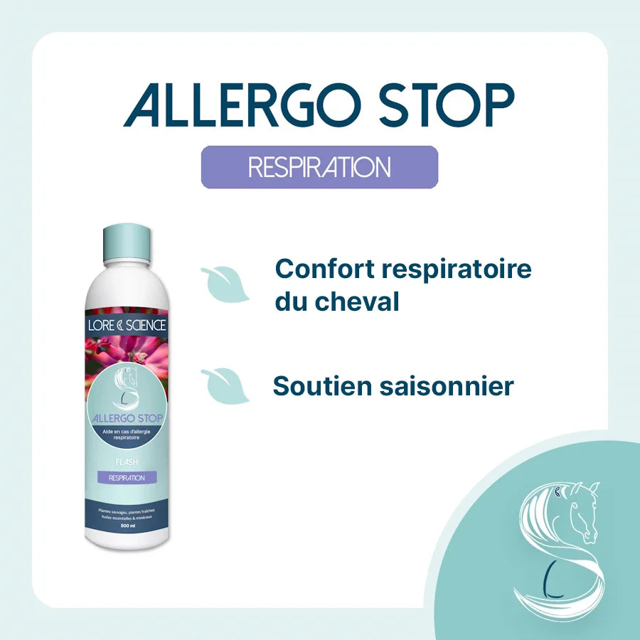 Allergo Stop (flash) est un produit d’alimentation complémentaire naturel pour chevaux. Il s’inscrit dans un programme de complémentation alimentaire ajoutée à la ration de base de l’animal aidant à soutenir par l’alimentation le bien-être respiratoire global du cheval en bonne santé.