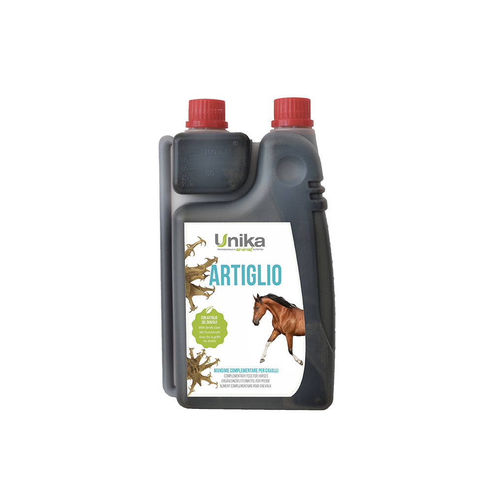 Artiglio est un complément alimentaire sous forme liquide, idéal pour les propriétaires qui souhaitent favoriser la mobilité articulaire de leurs chevaux. C’est un bon complément alimentaire recommandé pendant les périodes d’entraînement intense durant lesquelles les articulations et les muscles sont mis à rude épreuve pendant longtemps. Artiglio, pour ses propriétés, peut également être recommandé aux chevaux âgés qui ont des difficultés à maintenir la fluidité des mouvements articulaires.