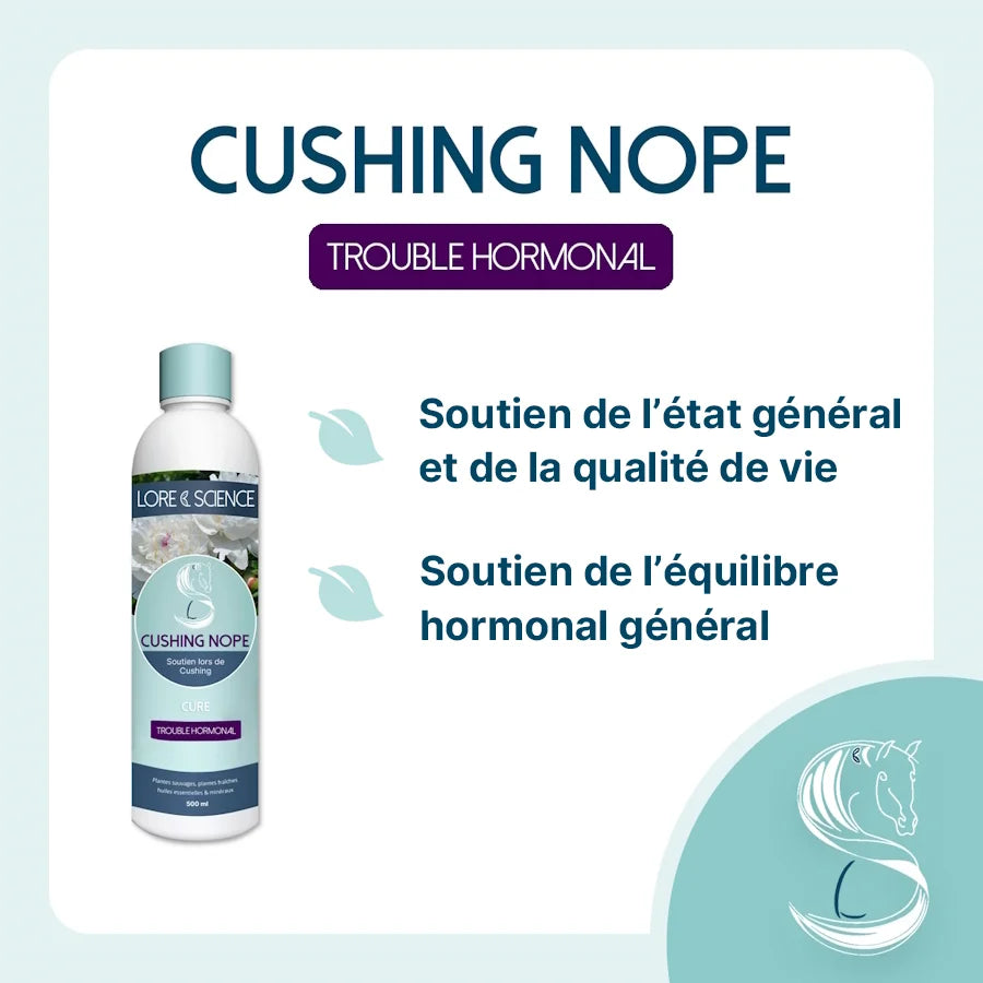 Cushing Nope (fond) est un aliment complémentaire enrichi d’une synergie de plantes fraîches et huiles essentielles sélectionnées pour aider à soutenir l’état physiologique des chevaux vieillissants.
