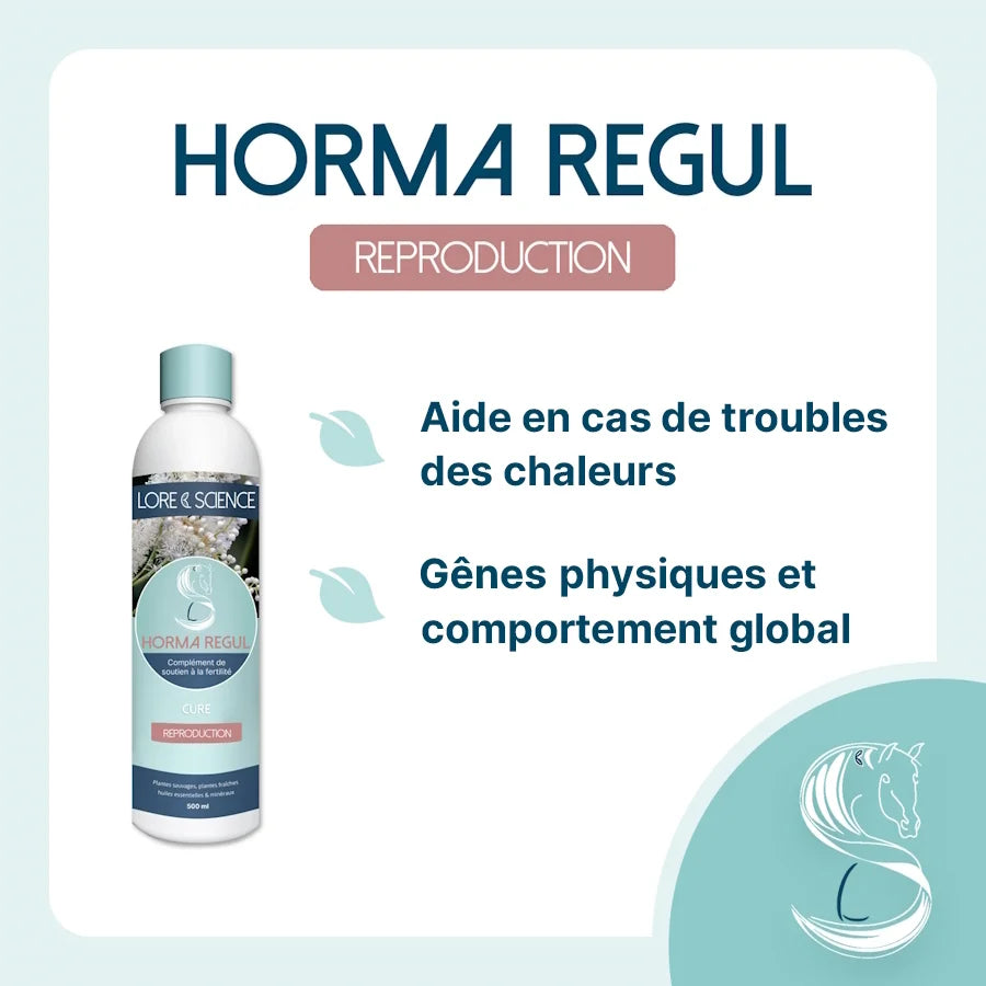 Aliment complémentaire en aide au soutien des fonctions hormonales de la jument dans un contexte de chaleurs et de fertilité. Horma Regul (fond) apporte un soutien naturel à la jument dans son cycle et ses chaleurs et accompagne son confort et son bien-être.