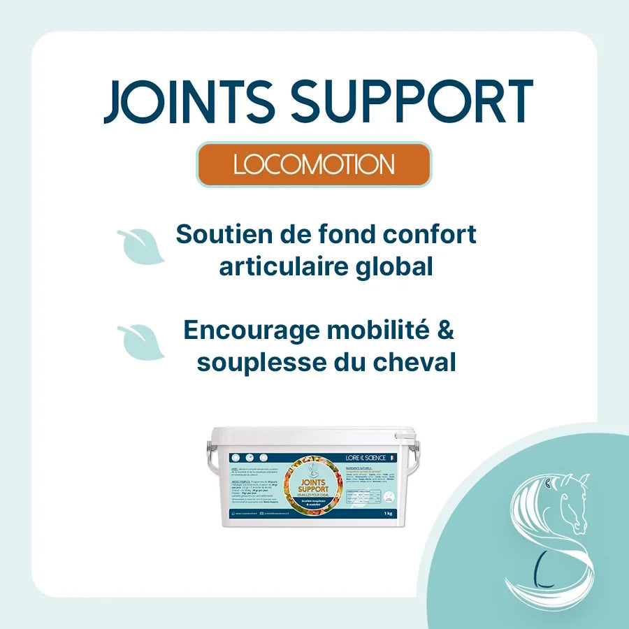 Aliment complémentaire 100% naturel à base d’une synergie de plantes, soutient le travail normal des articulations et tendons du cheval encourageant ainsi sa mobilité et sa souplesse. Joints Support (fond) est un soutien régulier