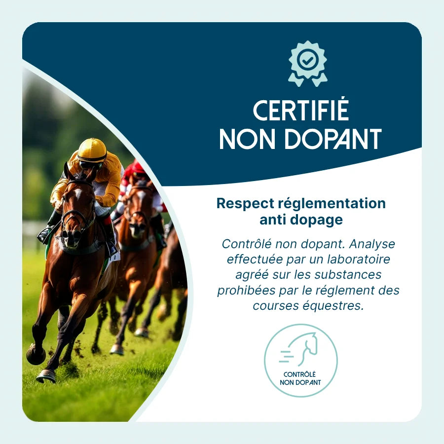Produit d’alimentation complémentaire pour chevaux, ne se substitue pas à un médicament.